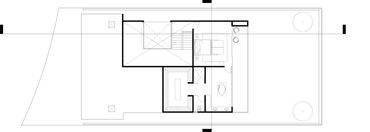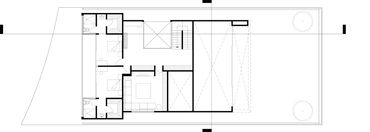 La altura y media que se logra en la estancia se debe a la decisión de elevar el bloque que conforma la recamara principal, desprendiendo a éste de la planta alta; dotándolo de privacidad y de manera contrastante, una apertura total al jardín. El resto del área privada esta conformada por dos recamaras, una sala de TV y un estudio abierto. En planta baja el bloque de servicio de la casa esta desplantado de manera lateral adyacente al vestíbulo de acceso y esta conformado por la cocina, recámara de servicio, baños y área de lavado.