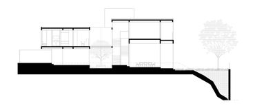 La distribución de la casa esta creada con el objetivo de abrir hacia el jardín la recamara principal y la estancia de altura y media. El acceso se lleva a cabo a nivel de calle a través de un pasillo que da una sensación de intimidad y escala humana. Dicha percepción se ve interrumpida de manera tajante al presenciar el cubo de escaleras, que busca exhibir el funcionamiento de la casa y a su vez aportar a la estrecha relación interior-exterior mediante un ventanal de doble altura. Esta interrupción de los cuerpos solidos de la casa enmarca un árbol que funge como personaje principal de la composición y testigo silencioso del tiempo por su carácter caducifolio. Dicho ventanal crea sombras diversas al interior de la casa a lo largo del día y dota de iluminación natural a los vestíbulos en todos los niveles. El juego de escalas llega a su apogeo al presenciar la monumental estancia al final del corredor revestido en madera. Es ahí donde se erosionan las divisiones entre el interior y exterior. La cristalera se abre para crear una sensación de amplitud y transformar la estancia en una terraza cubierta.