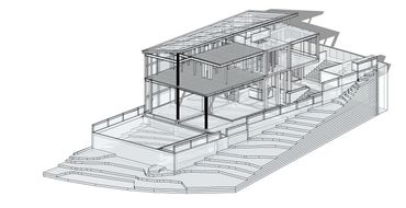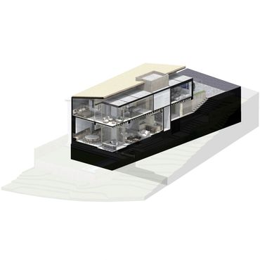 A la casa se accede descendiendo por una escalinata adornada de vegetación endémica. A unos pasos se descubre el gran salón, donde cocina, comedor y estancia conviven con el jardín y la terraza. Gracias a sus amplios ventanales corredizos, el límite entre adentro y afuera desaparece a voluntad.