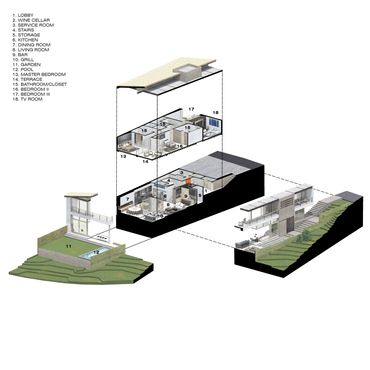 La casa FA se encuentra ubicada en Tepeji del Río, algunos kilómetros fuera de la mancha urbana de la zona metropolitana del Valle de México. Es un proyecto residencial de descanso, erigido sobre una loma descendente con una vista privilegiada hacia la presa y el campo que se extiende hasta las montañas. Esta inmejorable condición, ameritaba un proyecto arquitectónico que priorizara las vistas y otorgara al usuario espacios amplios con una estrecha relación interior exterior.