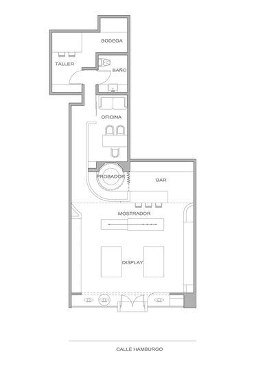 La sede original, poseía una atmósfera muy particular en la que se combinaba la calidez de sus acabados de madera con amplios colgadores saturados de ropa y telas. La escala pequeña del local hacía sentir al usuario en un espacio exclusivo y acogedor. Al mudarse a un espacio de una escala considerablemente mayor, el reto seria tratar de conservar esa sensación de refinamiento y bienvenida que poseía la tienda anterior. Por lo mismo se busco que la gama cromática del local, así como su iluminación crearan esta sensación de comodidad pese a la nueva escala. Los materiales fueron cuidadosamente elegidos ya que la arquitectura tenía que seguir la línea distinguida de las prendas que ahí se exhiben.